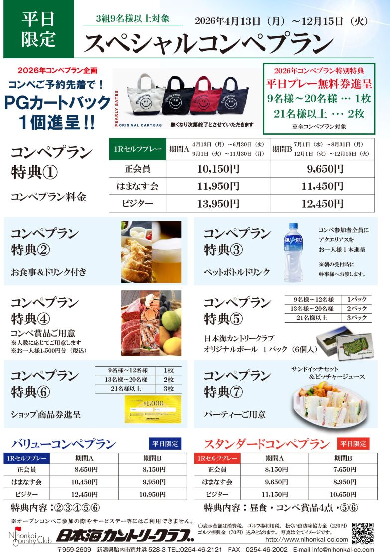 - 表示金額は、消費税・ゴルフ場利用税・松くい虫防除協力金(220円)・ゴルフ振興金(70円)が含まれております。